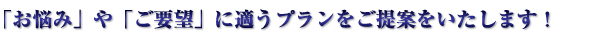 低予算重視のお客様、デザイン重視のお客様、機能重視のお客様など様々な条件に対応いたします!